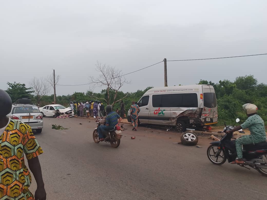 Le drame est survenu en face de la SONAMA, la société nationale de mécanisation agricole. Vers 18h, à quelques mètres de l’entrée de la ville de Ouidah, dans le département de l’Atlantique. Une voiture de marque CAMRY, transportant des passagers, a percuté violemment un minibus d’immatriculation étrangère, en stationnement.